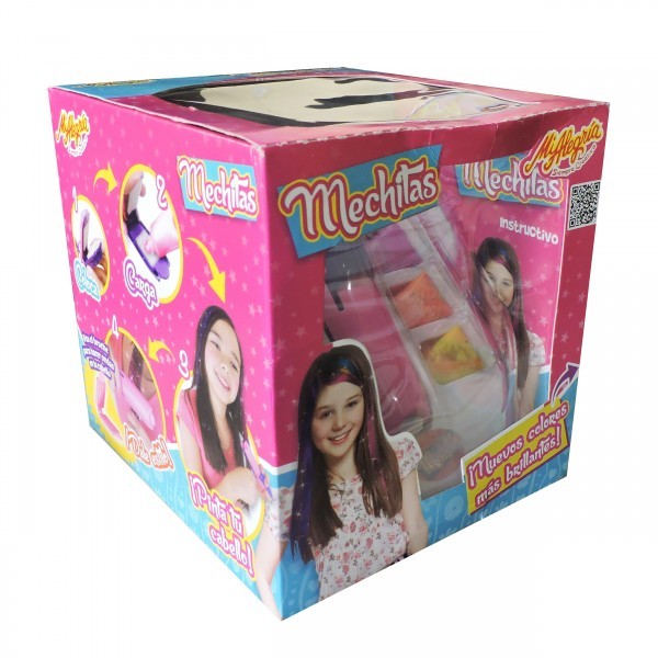 Novedoso estuche para crear mechas de colores en el cabello. La pintura es 100% lavable. Contiene tubitos con pintura de colores, tenazas y un porta accesorios.