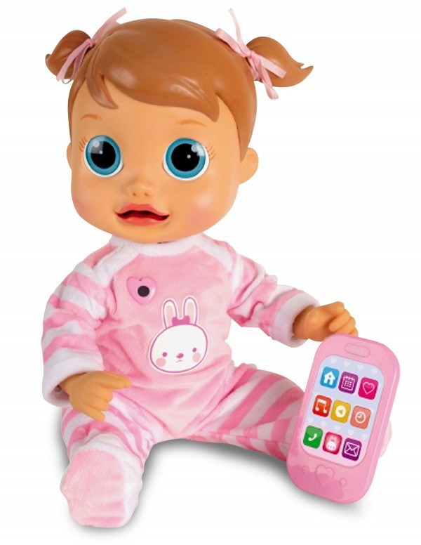 Es una muñeca habladora y el primer bebé que aprende a hablar como un niño pequeño! ¡Cuánto más hablan con ella, más ella te responde! ¡Ella hace preguntas y responde a las tuyas! Aprende hasta 3 fases, y aprende palabras cada vez más difíciles: En el paso 1 sólo utiliza vocales y palabras simples. En el paso 2, utiliza palabras más complicadas y en el paso 3 hace frases completas. ¡Con más de 150 palabras y frases! ¡Mueve la boca y la cabeza! ¡Se acompaña de un teléfono móvil para conversar con la familia! es posible que puedas balancearla y hacerle cosquillas.