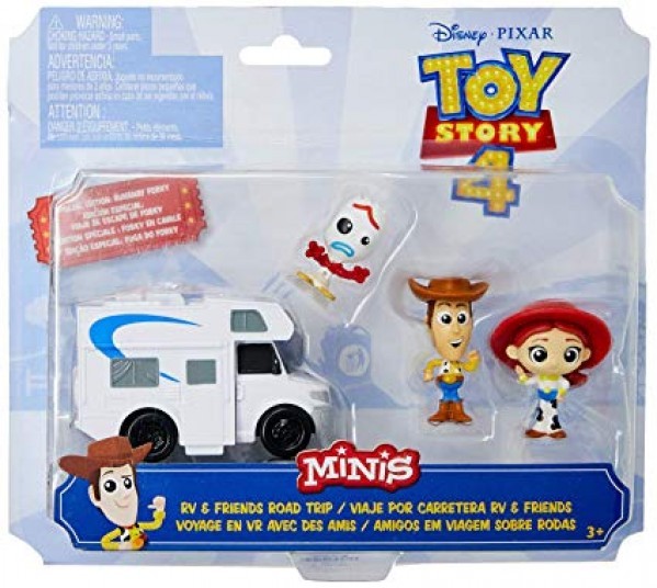 Llévate este emocionante mini pack le da vida a las aventuras de Toy Story 4 de Disney Pixar. En la nueva película, los juguetes se van de viaje y todo sale horriblemente mal. La compacta y acogedora casa rodante es el segundo hogar de Bonnie. Recrea la acción y las risas con esta casa rodante y las 3 mini figuras de personajes principales: ¡Woody, Jessie y un Forky único con cara de asustado! Las figuras vienen en una pose dinámica y el vehículo tiene ruedas que giran de verdad. Este set completo es un gran regalo para niños y niñas de 3 años en adelante.